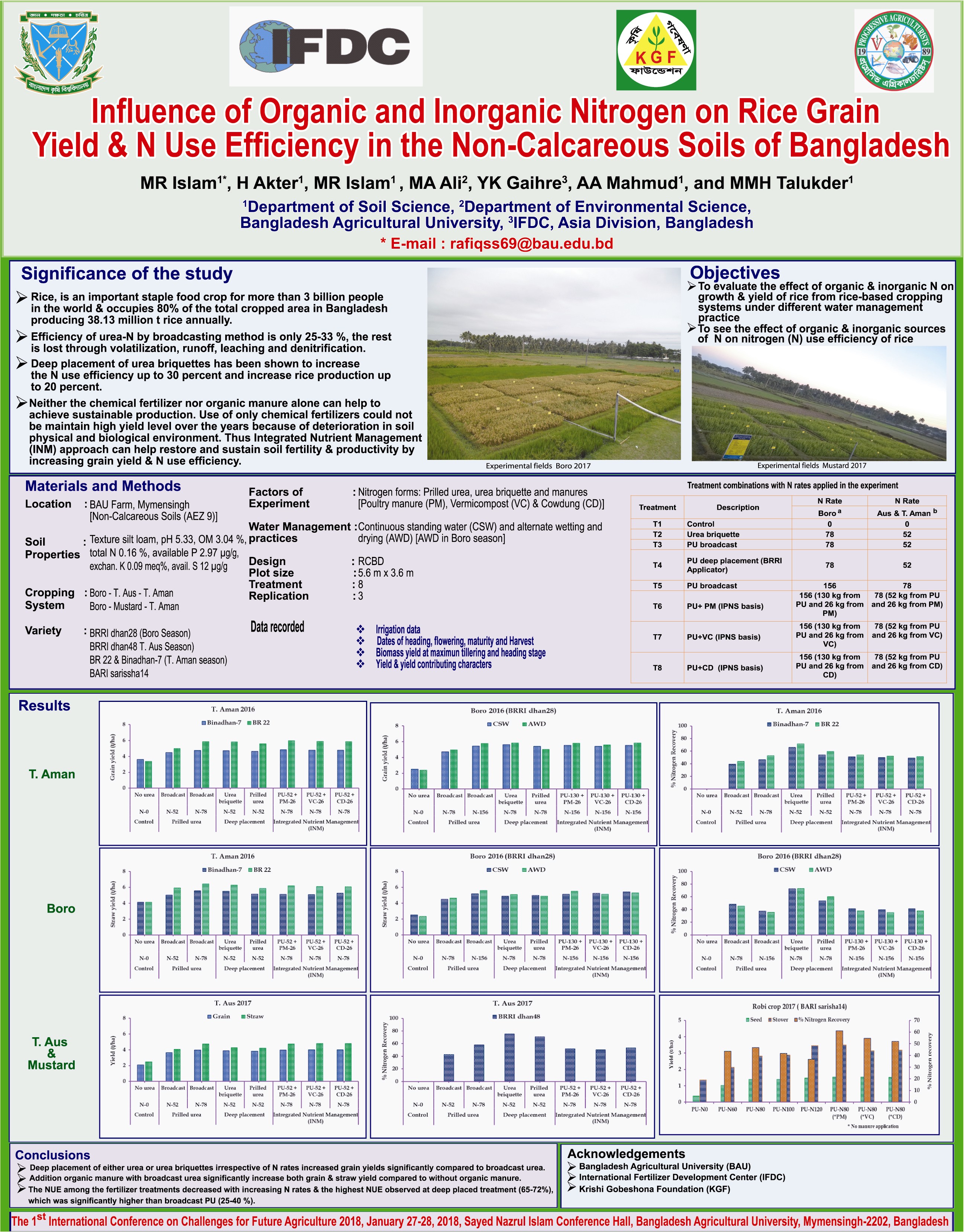 Islam, M.R., H. Akter, M.R. Islam, M.A. Ali, Y.K. Gaihre, A.A. Mahmud, and M.M.H. Talukder. 2018. “Influence of Organic and Inorganic Nitrogen on Rice Grain Yields and Nitrogen Use Efficiency in the Non-Calcareous Soils of Bangladesh,” presented at the First International Conference on Challenges for Future Agriculture 2018, January 27-28, Bangladesh Agricultural University (BAU), Bangladesh.